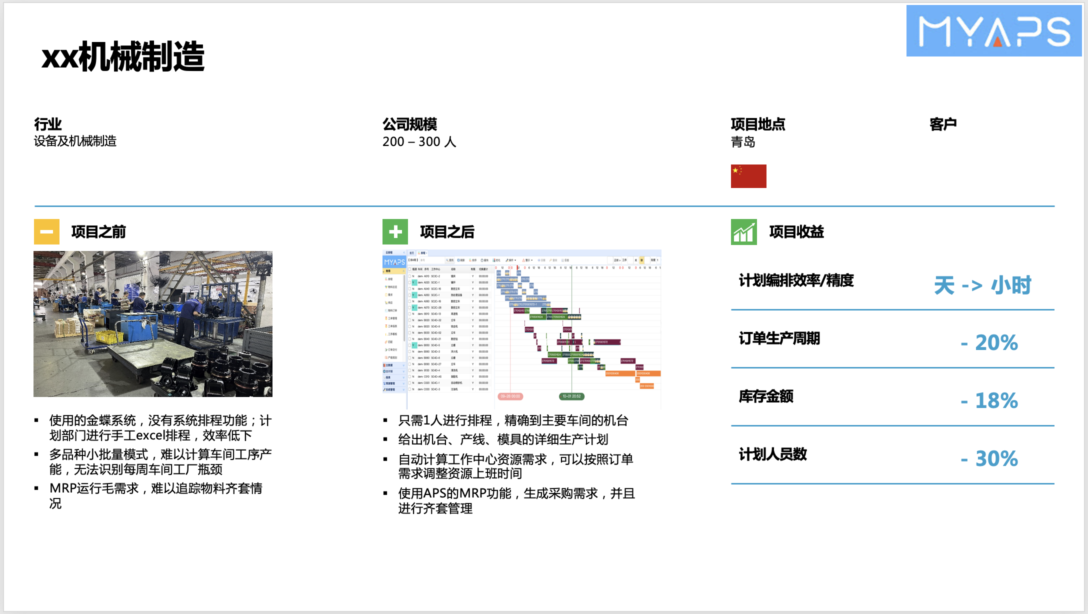 例如,MYAPS系统可以根据当前生产能力、已排产订单、物料库存等多维度因素,实时计算出任意订单的最早可能交付日期,准确率高达95%以上。